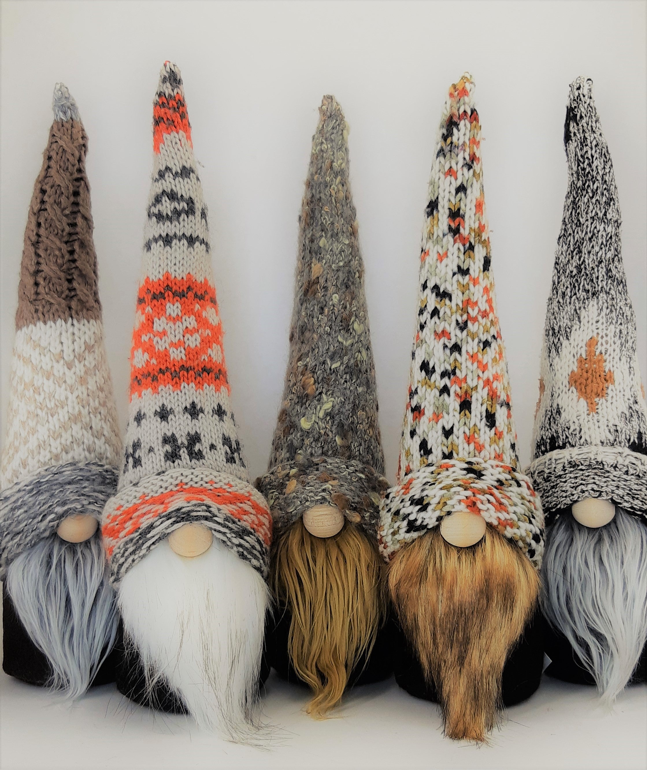 One-of-a-kind handmade gnomes, each with their own unique personality.