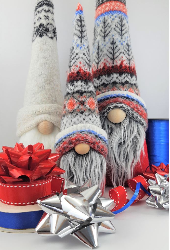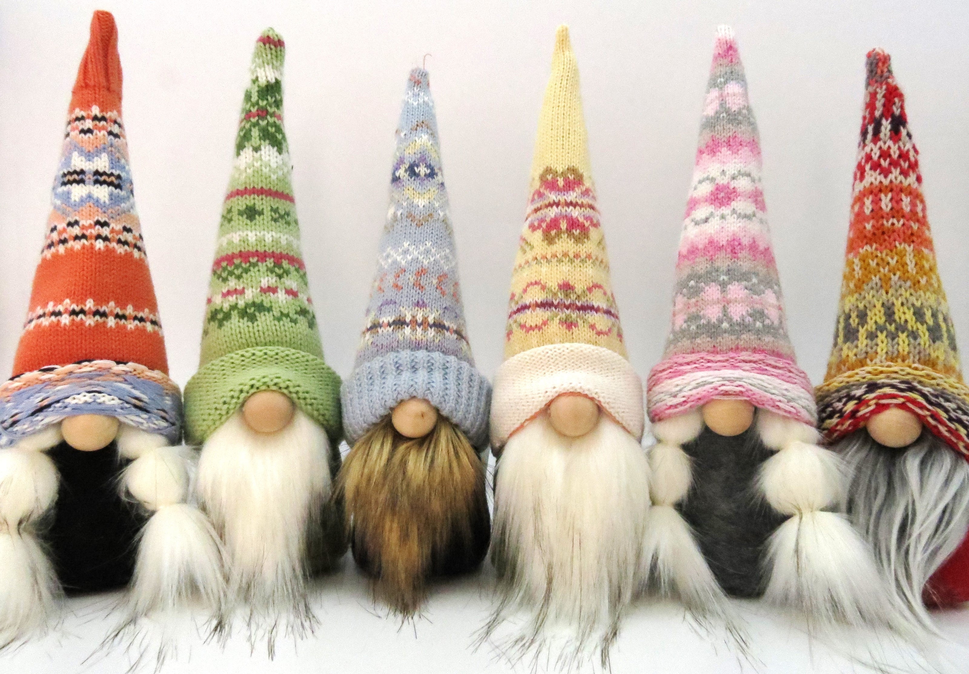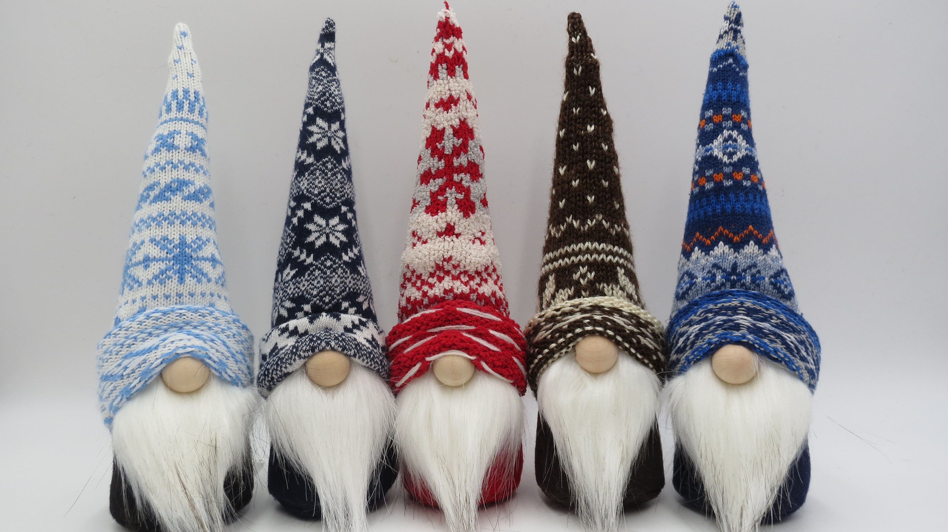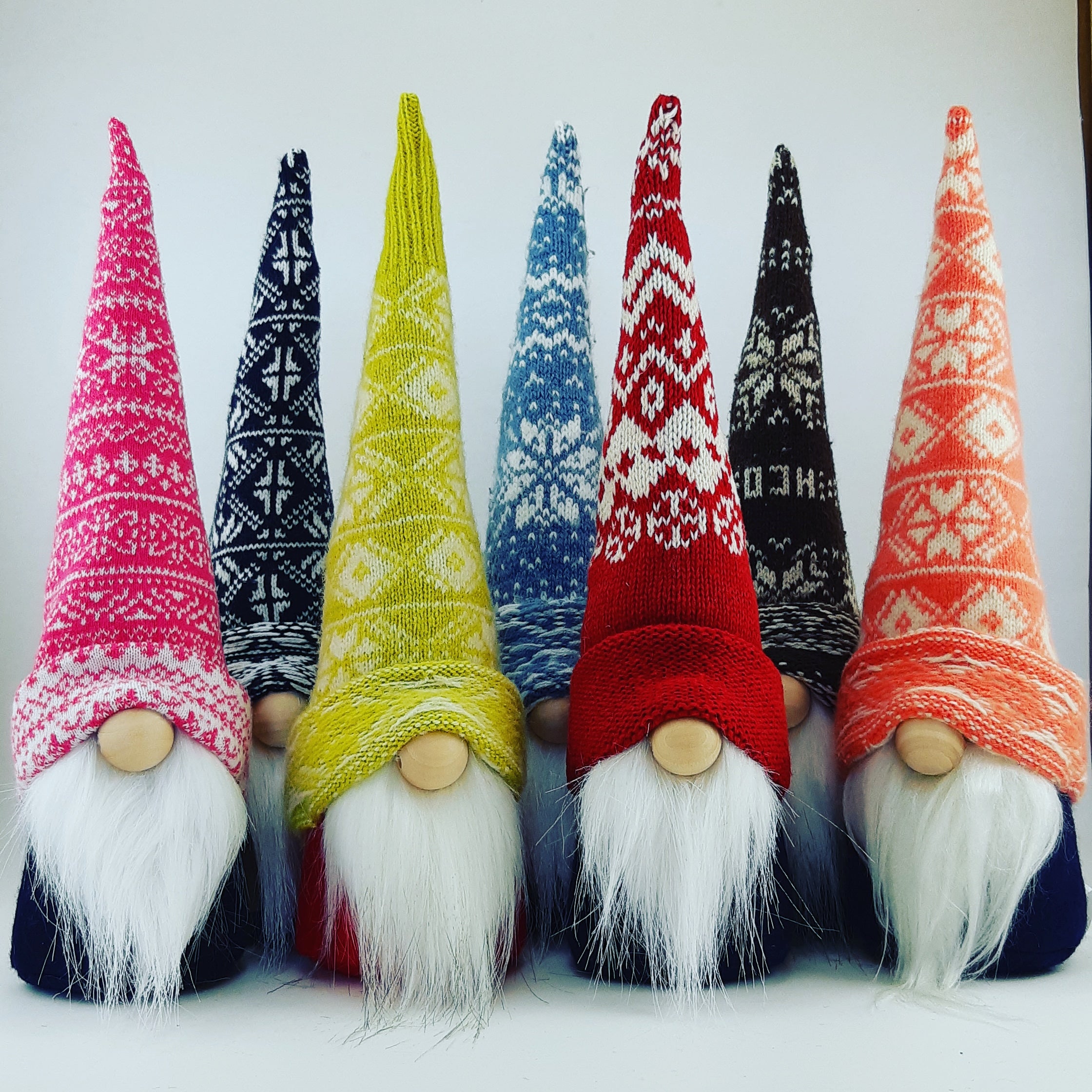 My gnome designs draw on the motif patterns from the Baltic, Nordic and Scandinavian areas… both the symmetry and the timeless traditional simplicity of these multi-coloured patterns. Each gnome is unique.